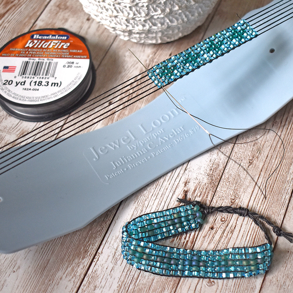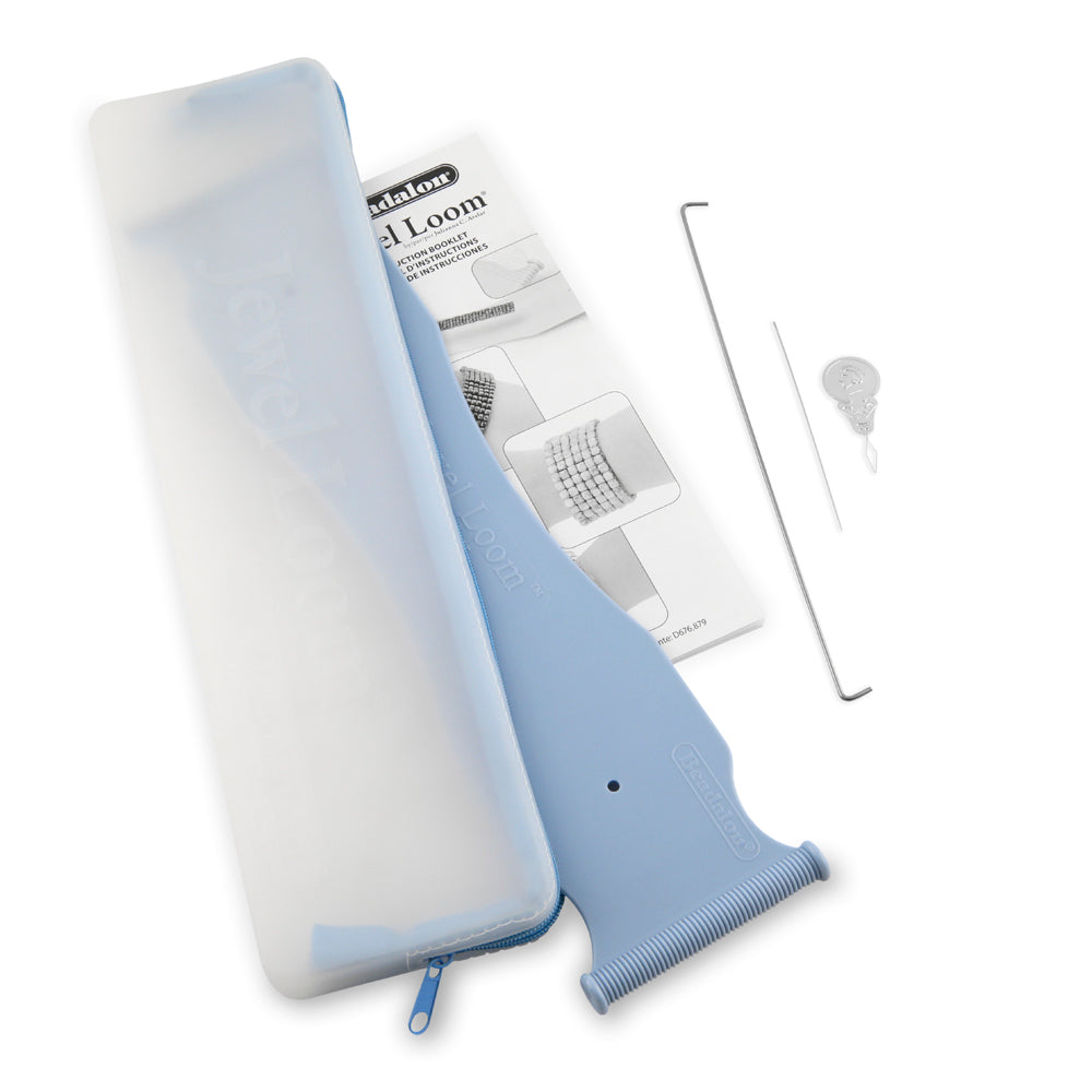 The Jewel Loom, designed by Julianna C. Avelar, is innovative, portable, lightweight and easy to use. The sleek design of the Jewel Loom has a work surface of 2.75 in (6.9cm) wide by 10.5 in (26.6cm) long. The design space is perfect for creating fashionable, on-trend jewelry pieces. The Jewel Loom fits perfectly in the palm of your hand allowing for ease of use for a comfortable grip and ultimate control while bead weaving. This kit includes the loom, travel pouch, needle, threader and instructions.